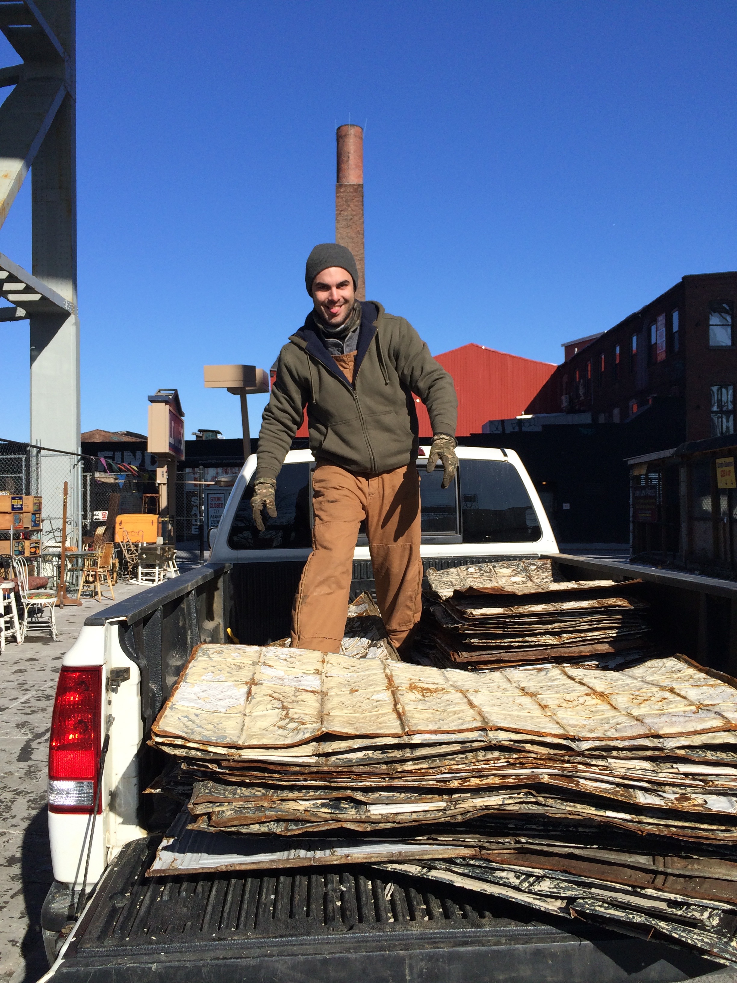 On what I thought was the coldest day of 2015 I went down to New York Iron in Gowanus, Brooklyn to hand pick 105 pieces of reclaimed tin.